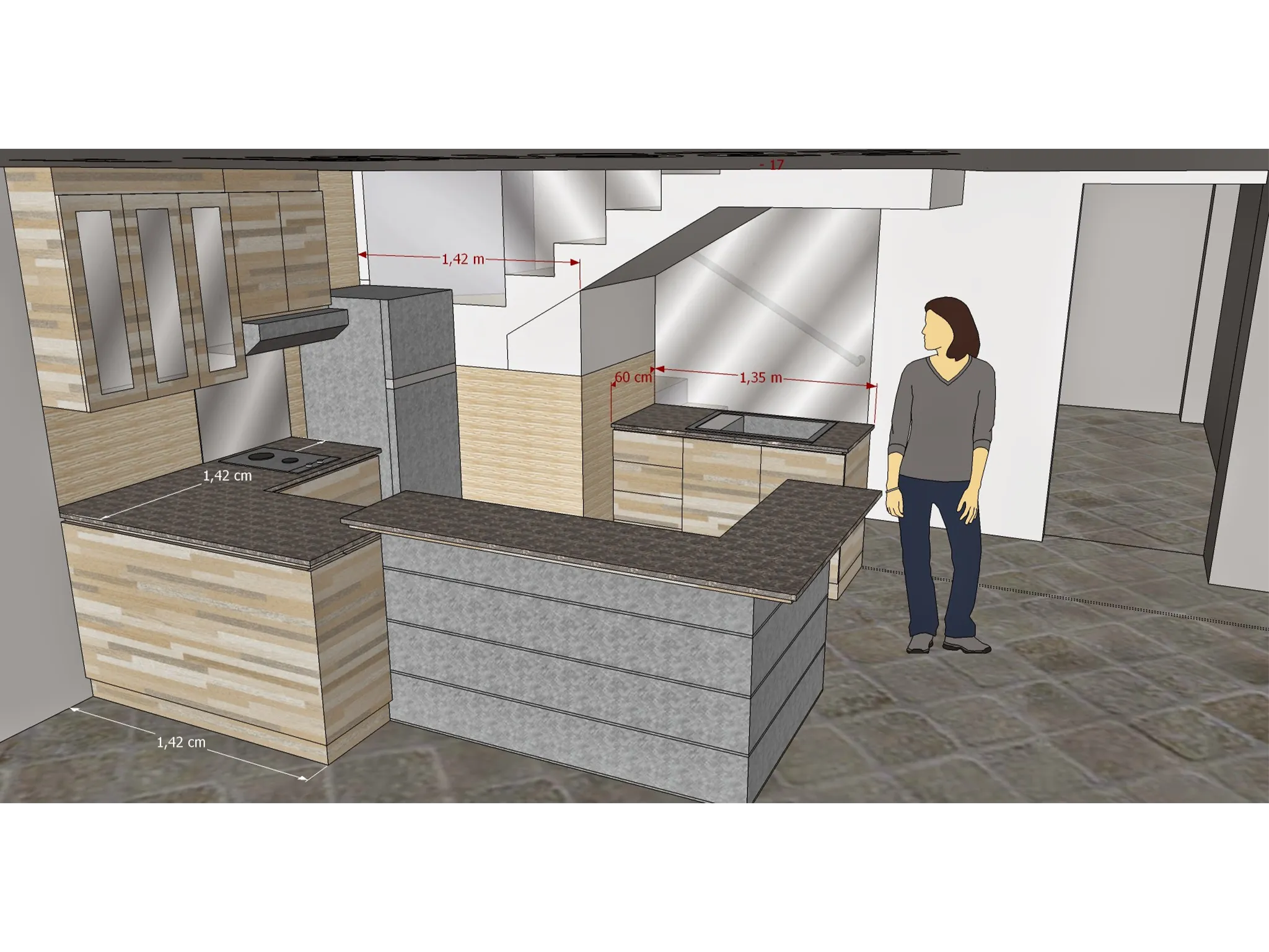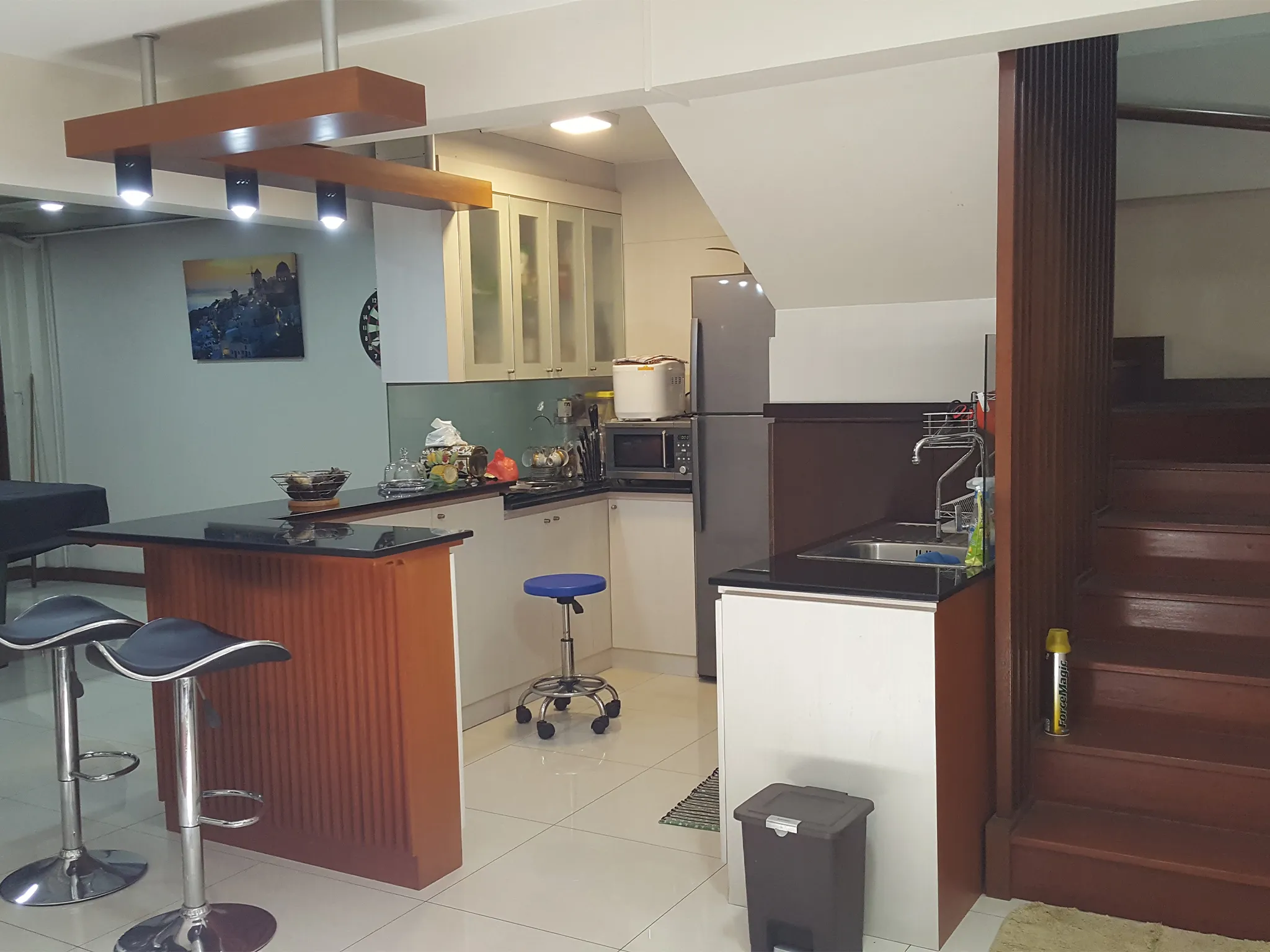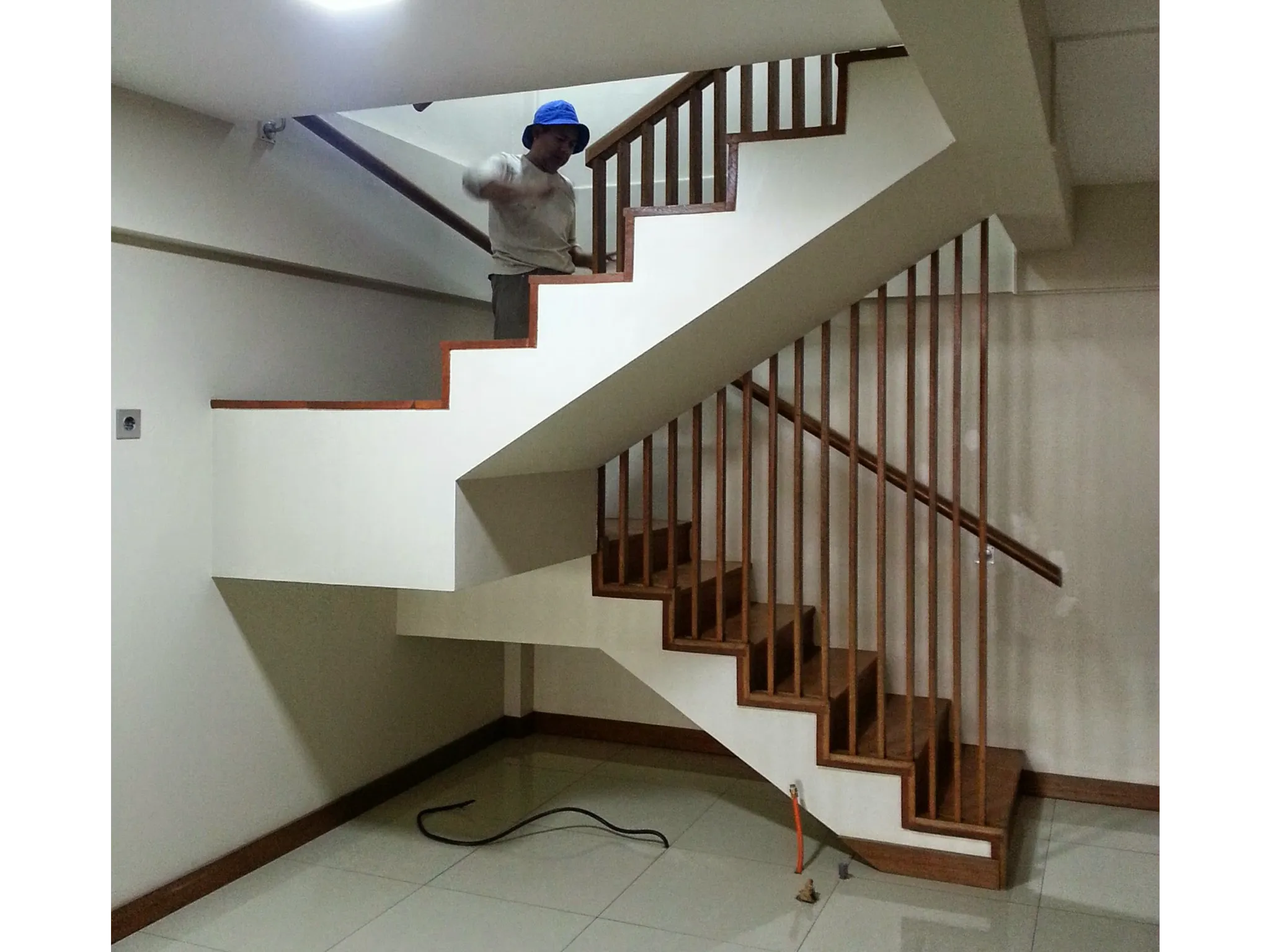 Proyek renovasi rumah tinggal 2 lantai di Jl. Suryani, Bandung.Didesain dengan membongkar satu area lantai yang membentuk vide, sehingga cahaya matahari bisa masuk sampai ke lantai bawah. Lantai bawah memiliki plafon yang tinggi maka bisa dibuat mezanin untuk kantor dan ruang fitness.
